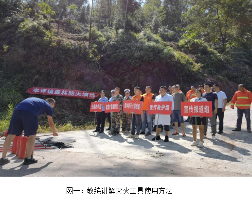 演练中,教练对现场森林灭火设备进行详细讲解,随后组织牟坪镇森林防灭火队员、基干民兵连进行森林防灭火实际操练,顺利扑灭火源。