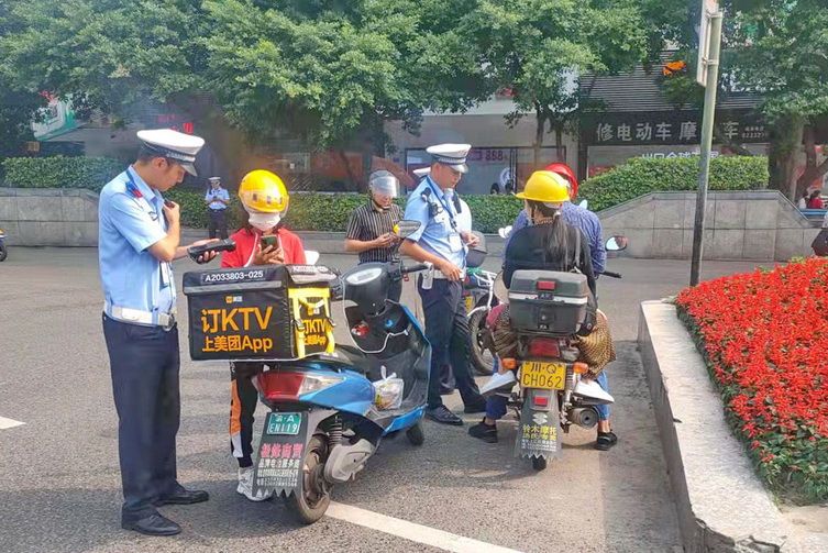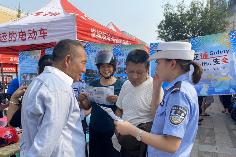 宜宾公安交警人员向市民宣传关于电瓶车的法律法规安全知识