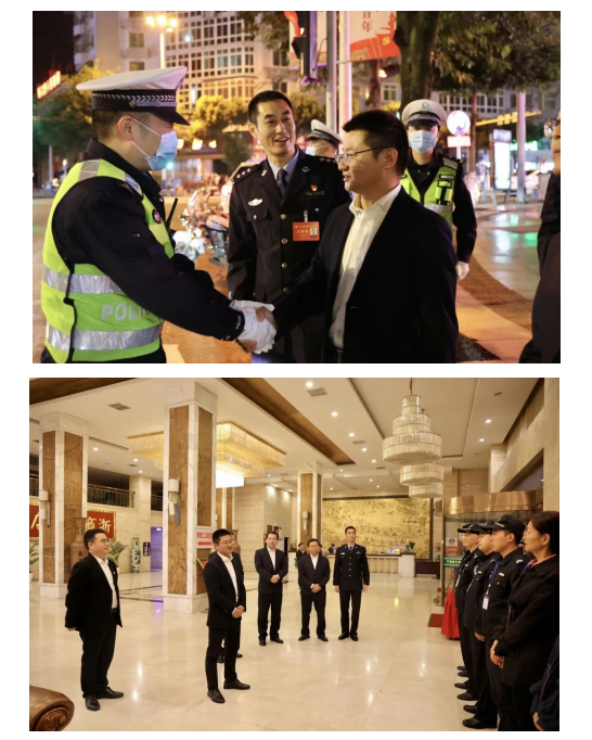 四川新闻网消息 10月16日晚上,县委常委、组织部部长陈春,县委常委、宣传部部长彭强、县委常委、政法委书记王治博、县委常委、县委办主任郭刚一行到县党代表入住酒店、筠连县公安局情指中心、镇政府路口交警执勤点督导检查“中国共产党筠连县第十四次代表大会”安保工作情况,并慰问一线执勤民辅警。