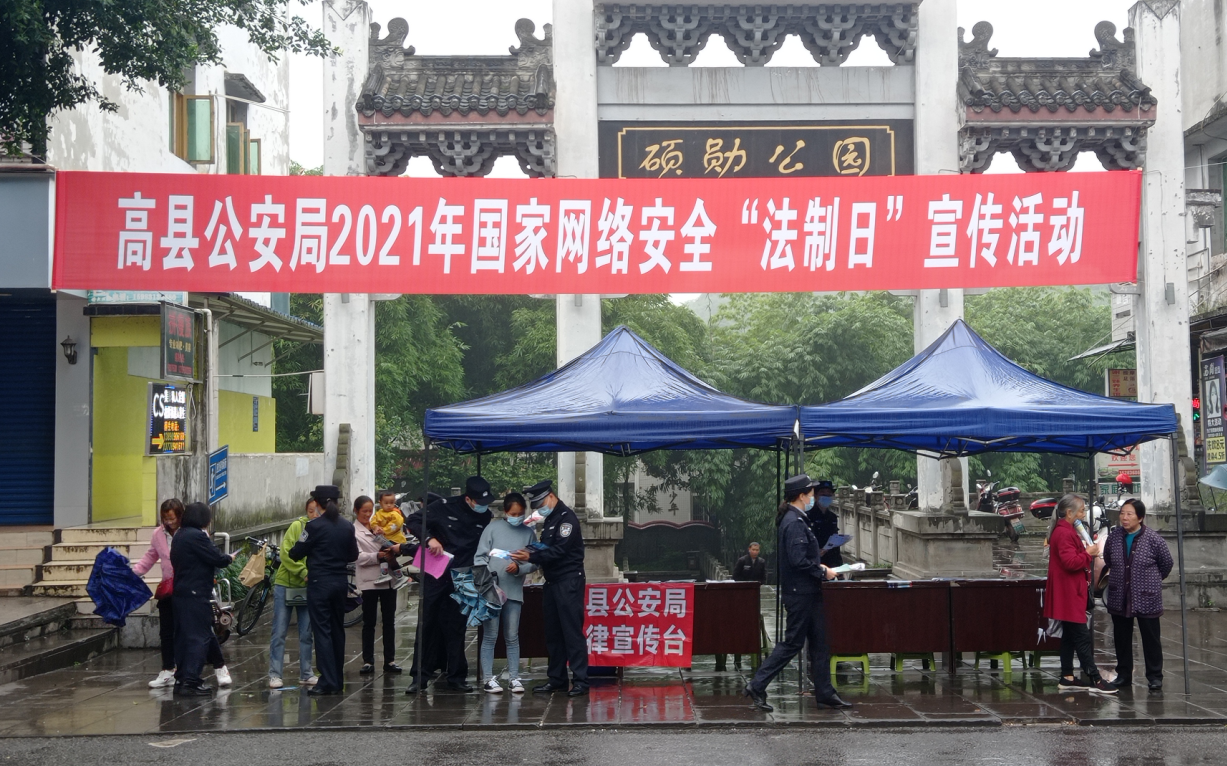 四川新闻网消息 一年一度的国家网络安全周来临,按照县网信办统一安排部署,近期,高县公安局情指中心联合治安、经侦、禁毒、特巡警、刑侦等部门,在高县庆符镇硕勋公园东门开展2021年网络安全宣传周法制宣传活动。