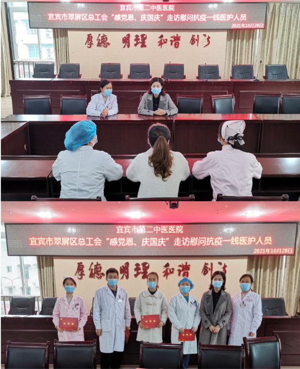 肖伟把党和政府的关怀以及工会组织的温暖送到每一位医护人员的心坎上,高度肯定了他们在疫情防控工作中作出的重要贡献,同时希望大家一定要做好自身防护工作、保障休息,有什么困难一定要向宜宾市第二中医医院工会组织提出来,在组织的帮助下得到切实解决。