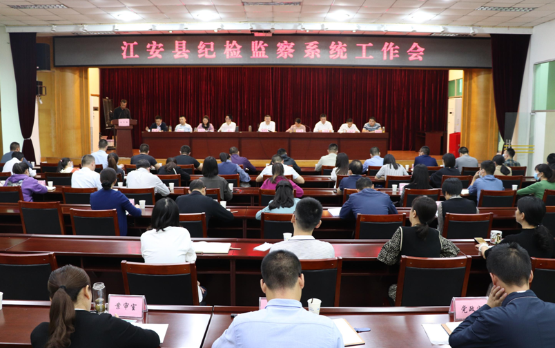 各镇纪委书记、副书记;县纪委监委派驻(出)机构全体干部;县纪委监委机关全体干部共计60余人参加会议。(江安县纪委监委 供图稿)