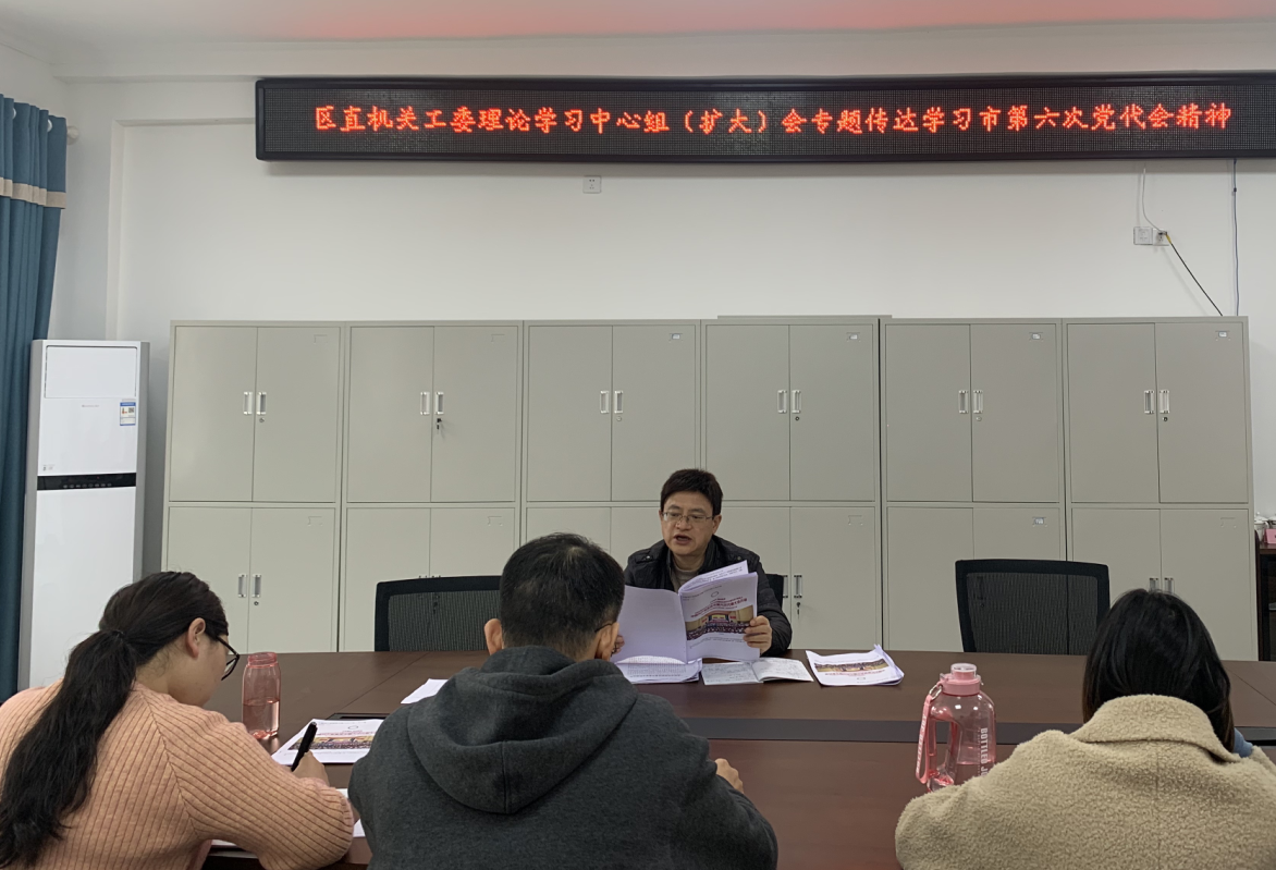 四川新闻网消息 11月1日,翠屏区直机关工委召开理论学习中心组(扩大)学习会,专题学习贯彻市第六次党代会精神。区委机关工委常务副书记彭传红主持会议,区直机关工委全体干部职工参加会议。