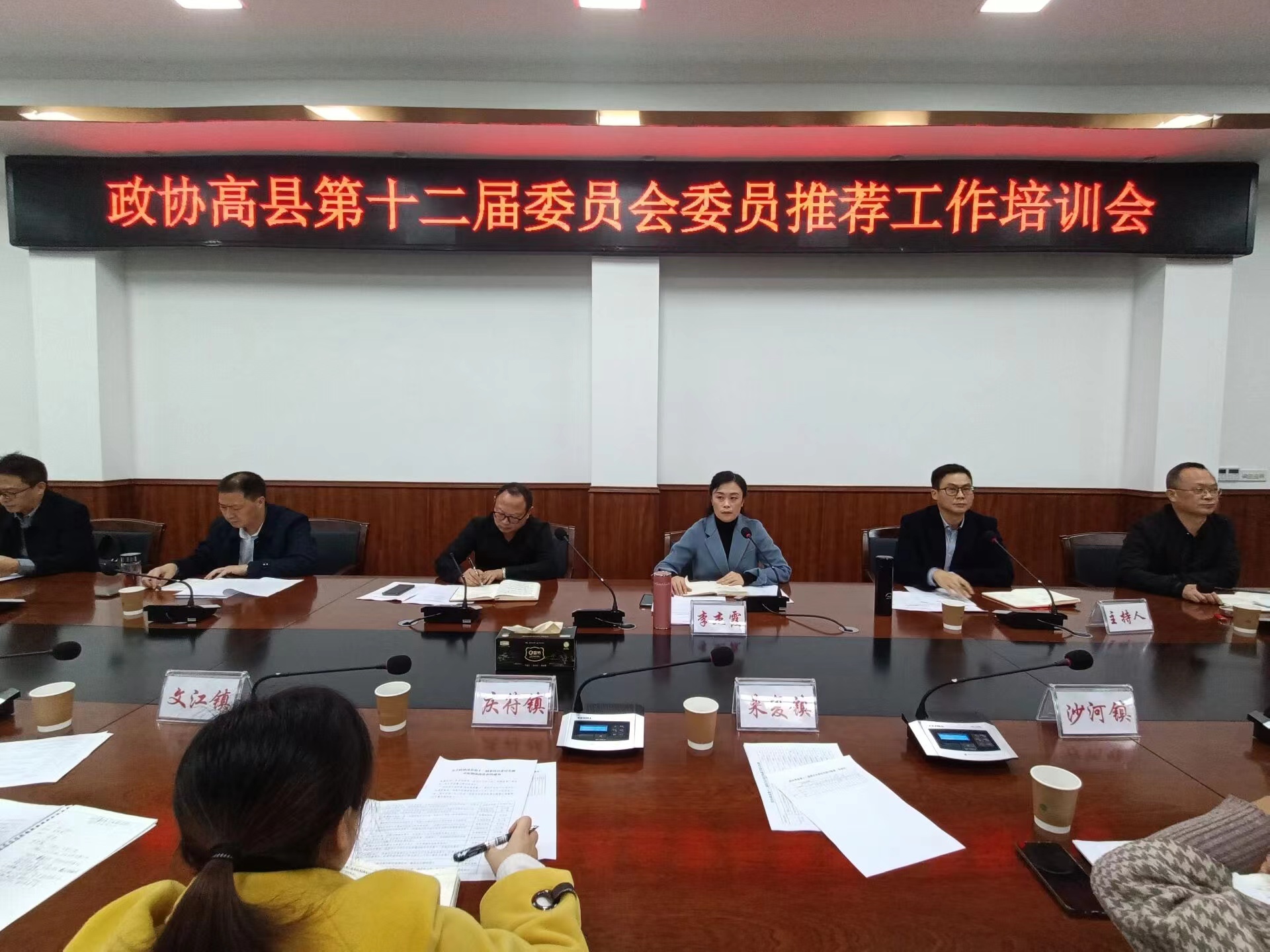 四川新闻网消息 近日,高县召开政协第十二届委员会委员推荐工作培训会,会议由统战部常务副部长、县台办主任李强主持。县委常委、统战部部长李杰霞出席会议,13个镇党委副书记,县委办、县人大办、县政府办、县政协办等48个部门分管负责人参加会议。