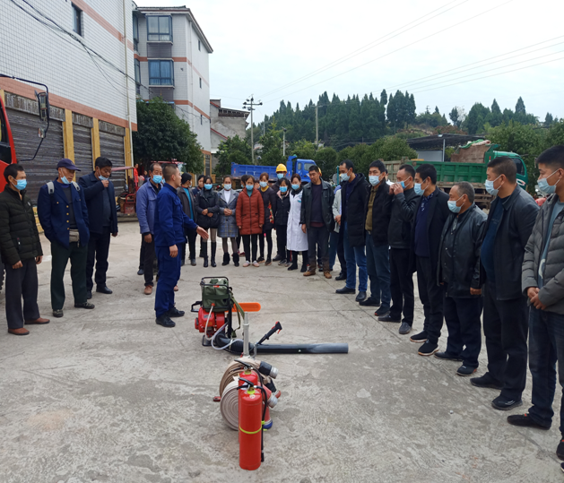 下午2:00演练正式开始,接到救援请求后,村级应急分队人员迅速集结,开展现场处置。随后通讯人员立即向消防中队和镇应急队报告,消防中队和镇应急队接到相关情况,即刻整理装备、组织人员登车到达现场,与村级救援队伍一同勘察现场并有序组织施救。