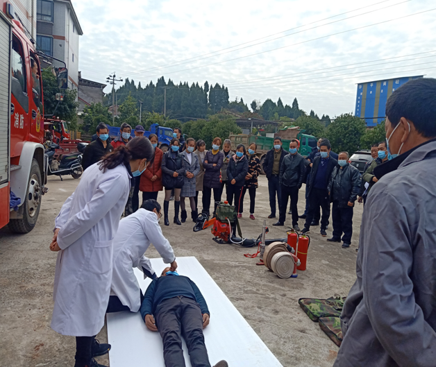 演练结束后,各队伍再次集结,消防中队队长为全体人员现场讲解了应急准备、应急器材使用、应急救援注意事项等内容;医院工作人员为大家现场展示了骨折处理、心肺复苏等急救措施。