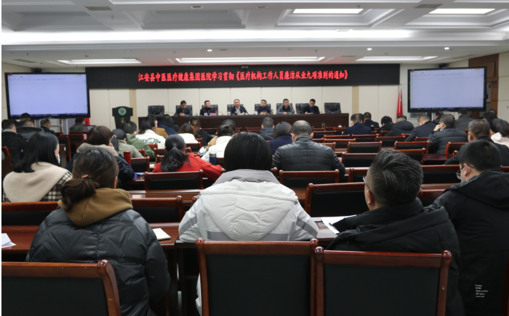 四川新闻网消息 “不参与欺诈骗保,不收受患方红包,不收受企业回扣……”11月19日,江安县中医医疗健康集团医院组织学习《医疗机构工作人员廉洁从业九项准则》,集团医院院班子、各镇分院班子成员、中层干部、职能科室人员及全体党员参加此次会议。
