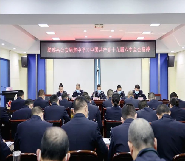 会议学习了党的十九届六中全会精神,县局党委委员、副局长韩雪,政治处、法制大队、网安大队负责人就学习贯彻全会精神交流发言。