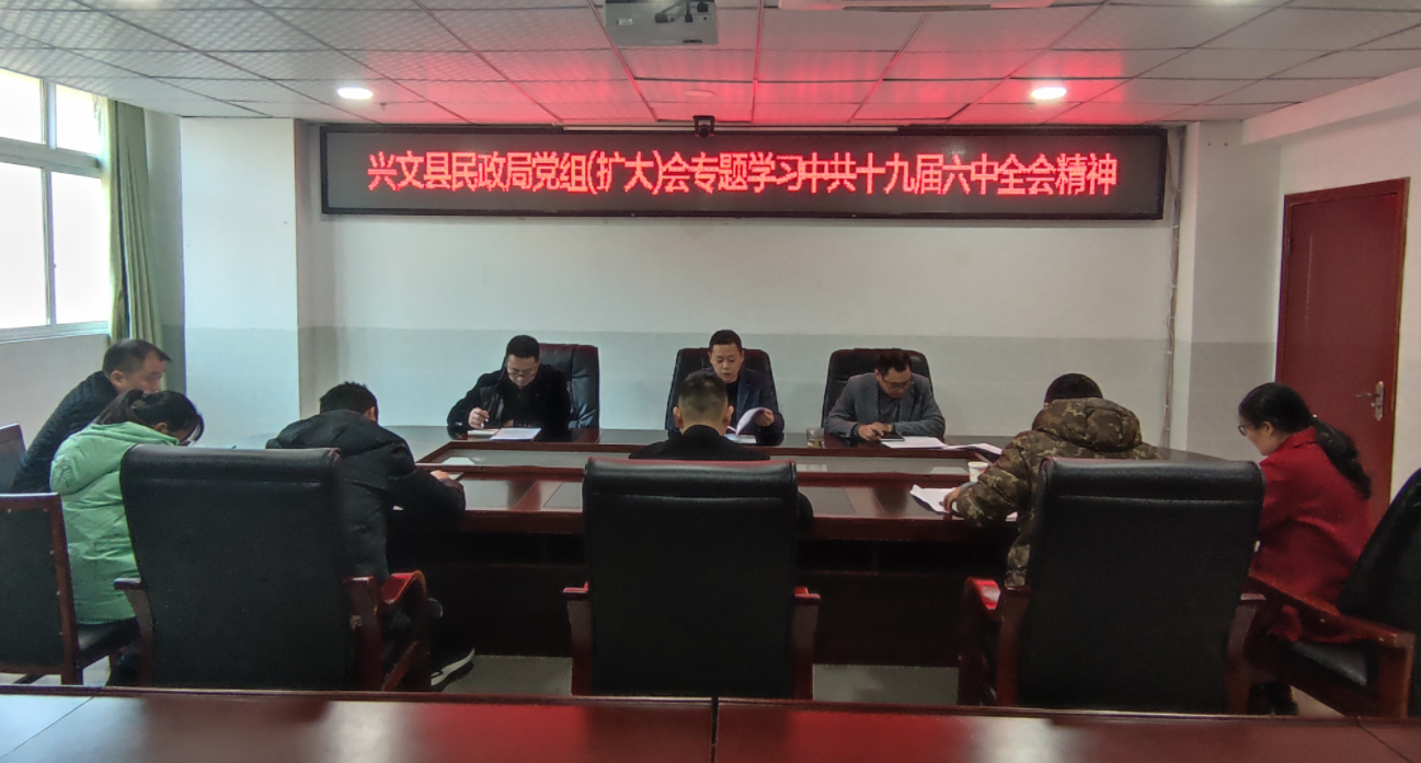 会议指出,学习宣传贯彻党的十九届六中全会精神,是当前和今后一个时期的首要政治任务,要坚决扛起政治责任,聚焦聚力推进全县民政事业高质量发展。