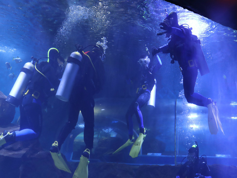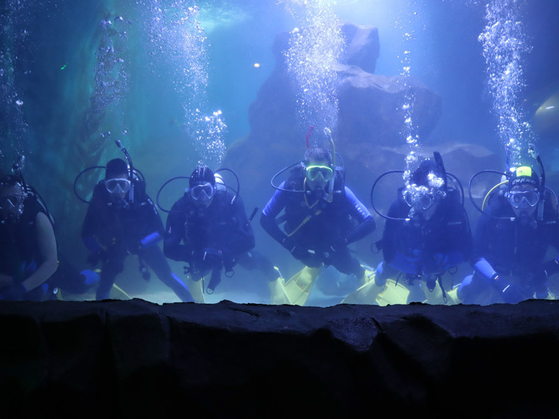 四川新闻网消息 为保证潜水能力稳步提升,着力加强水下救援能力训练,11月23日下午,宜宾市消防救援支队公共安全潜水救援队员在翠屏区欢乐海洋世界开展潜水救援技术基础科目训练。