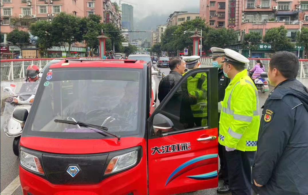 凝聚工作合力,由公安交警、交通运管、特巡警大队等部门组成执法小分队,采取“定点值守+流动巡查+突击整治”勤务模式,围绕电动三轮、四轮车容易出现的农贸市场、水果市场等重点区域以及省道、县乡主要道路,对发现驶入禁行区域的三轮车或上路行驶的老年代步车及时进行查处,综合运用现场处罚、签订《保证书》、暂扣车辆的方式进行严查严管,做到“逢车必查、违法必究”。