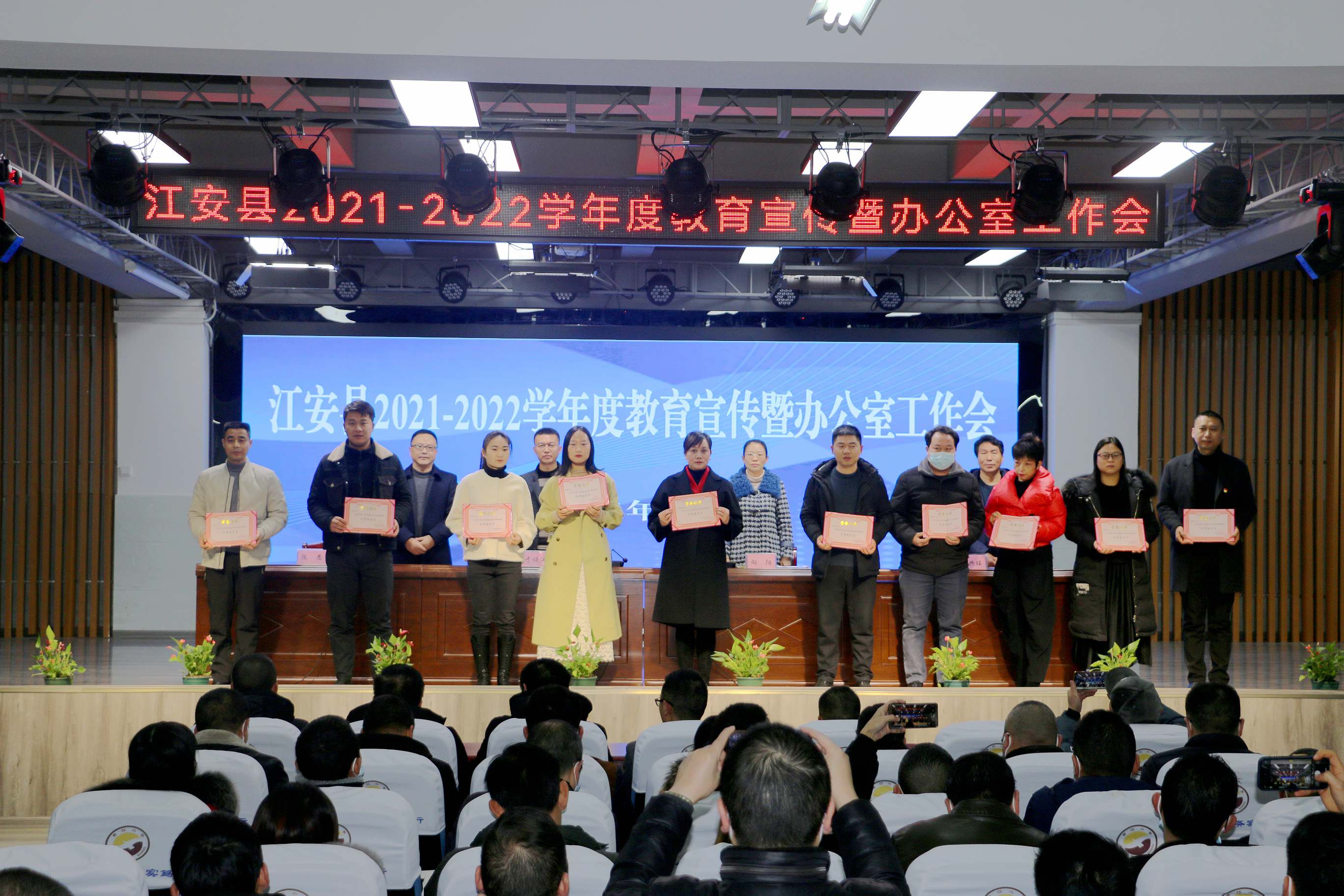会议总结回顾了上学年度江安教育宣传工作取得的成绩,深刻剖析了存在的不足,对新学年度教育宣传工作进行了安排部署;宣布了荣获2020-2021学年度四川省教育报刊社学刊用刊先进集体和先进个人、江安县教育宣传工作先进单位和优秀通讯员名单,并进行了现场颁奖。