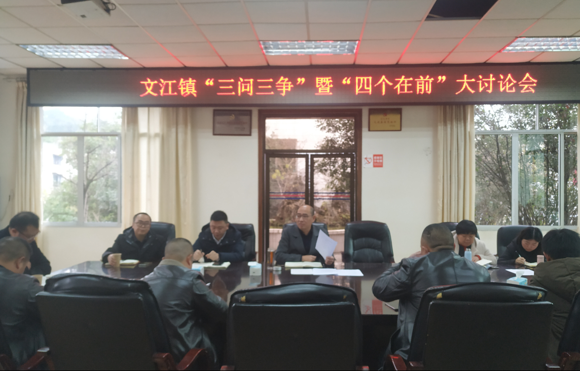 这是1月5日发生在高县文江镇党委会议室的一幕,在家领导班子、各办所中心负责人、重点村(社区)书记齐聚参加镇“三问三争”暨“四个在前”大讨论会。