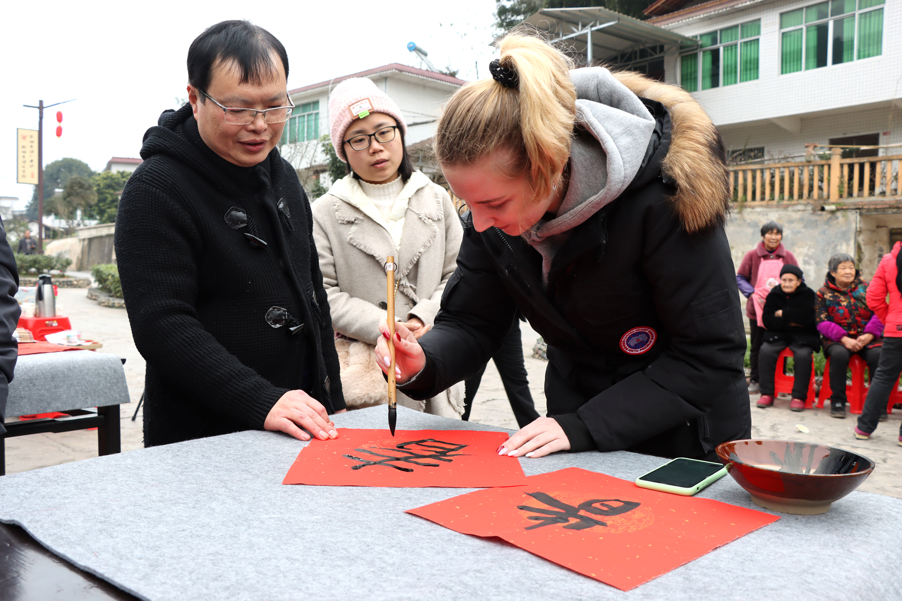在该镇春酒文化广场,县书法协会的书法家们现场挥毫泼墨,书写春联。外国客人在书法家指引下,提笔饱蘸浓墨,书写了“丝路茶乡 红色高县”“川南请春酒”“看四川”等作品,切身感受了中国春节文化与书法艺术融合的独特魅力。