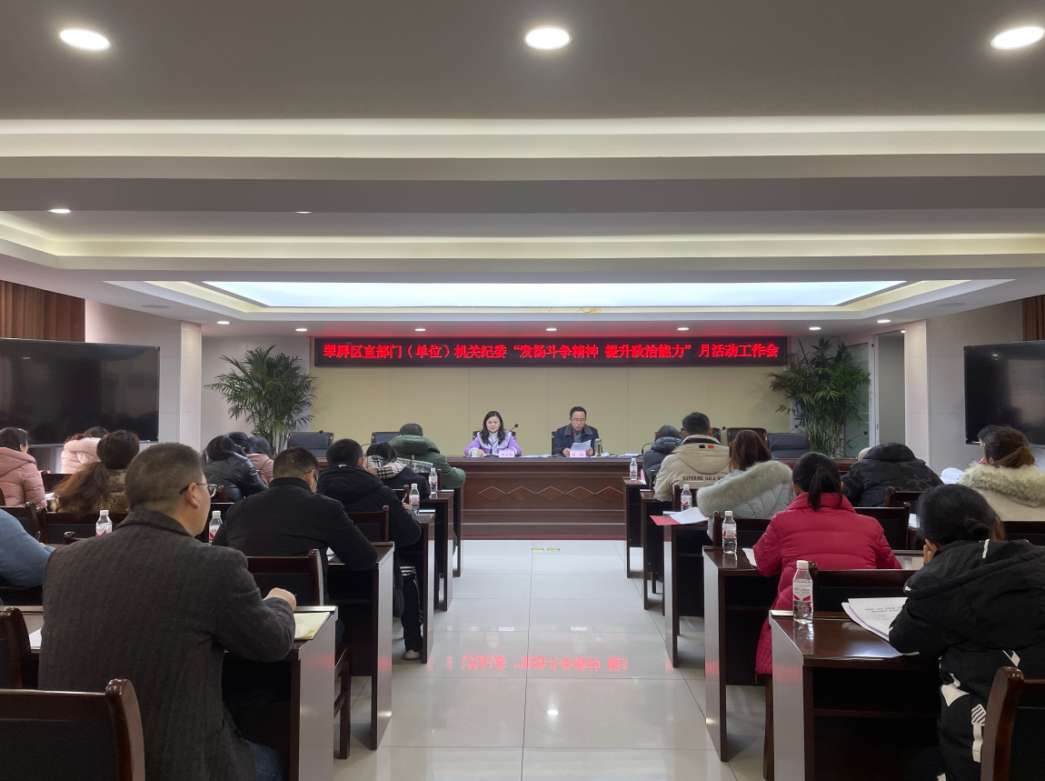 会议传达学习贯彻十九届中央纪委六次全会精神、《中国共产党纪律检查委员会工作条例》、《关于加强中央和国家机关部门机关纪委建设的意见》,对区级部门(单位)机关纪检组织的职能职责、工作规程进行了再明确,对区直部门(单位)机关纪委“发扬斗争精神 提升政治能力”月活动相关工作进行了安排部署。