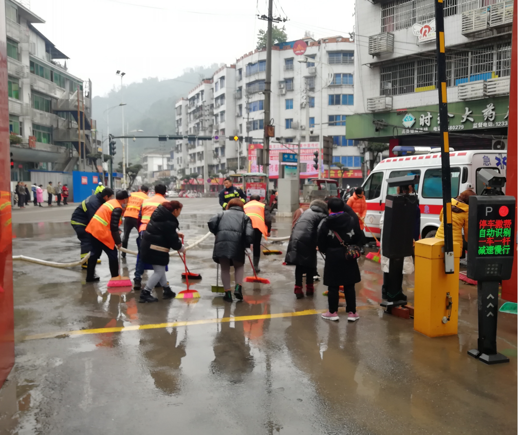 扫去尘埃接新春。组织城管办、消防中队及社区80余人,对城区街道进行统一的大清洗、大整理,冲洗面积达1.5万㎡,排查并清理卫生死角10余处,同时增加垃圾清运频次,保障生活垃圾日产日清,以整洁清爽的面貌迎接新的一年。 (文江镇供稿:彭敏、罗方琴)