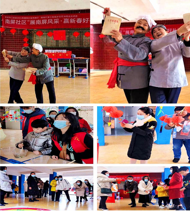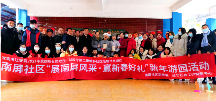 四川新闻网消息 为进一步发挥社区社会组织在创建和谐社区、繁荣社区文化、激发社会活力、深化居民自治等社会治理方面的积极作用,由江安县民政局、江安镇政府及其南屏社区主办,成都市锦江区益芯社会工作服务中心承办的“展南屏风采•赢新春好礼”新年游园活动,于1月26日在江安县南城小学校内开展,推进江安县省级第二批城乡社会治理试点工作。社区负责人、志愿者、文艺团演员、 居民代表、爱心企业社团和中心工作人员近100人参加此次活动。