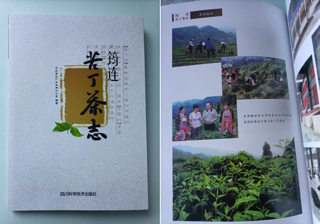 筠连苦丁茶,学名扣树(Ilex kaushue S.Y.Hu),已经收入《四川省重点保护农业野生植物》(农业野生植物资源调查与保护系列丛书。岳川、陈开勇、陈宝雄主编、中国农业出版社2020年4月)第59页“野生经济植物”,是宜宾市唯一列入的野生经济植物。(筠连县地方志办公室供图)