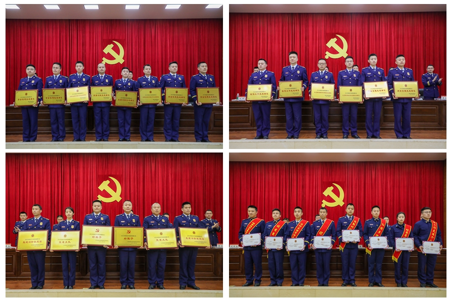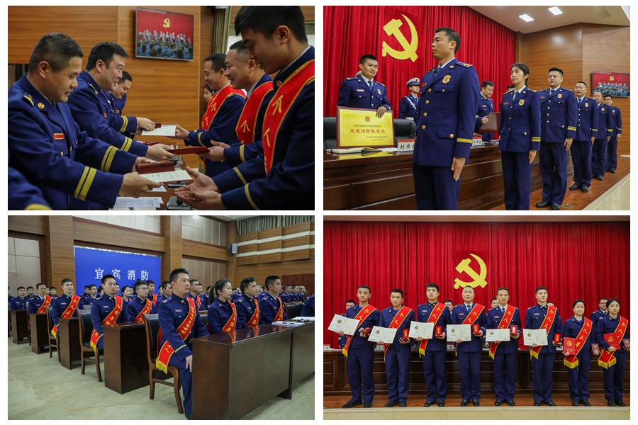 会议表彰了在2021年度班子队伍和业务建设中取得突出成绩的集体和个人,并向表彰对象代表以及荣立个人三等功的获奖单位和个人颁发了奖牌证书,鼓舞全市消防救援人员牢记使命,忠诚履职,接续开创宜宾消防事业发展新局面。