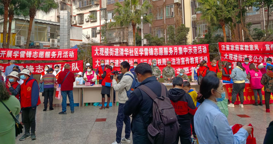 四川新闻网消息 2022年3月5日是第59个“学雷锋纪念日”,为进一步弘扬中华民族的传统美德、助推学雷锋活动深入持续开展,清华社区党委联合宜宾市总工会、市妇联、市科协等市、区包保单位,精豪眼镜等4家商圈共同体协会成员以及爱家贝读书协会在女学街小广场开展“学雷锋志愿服务月”集中示范活动。