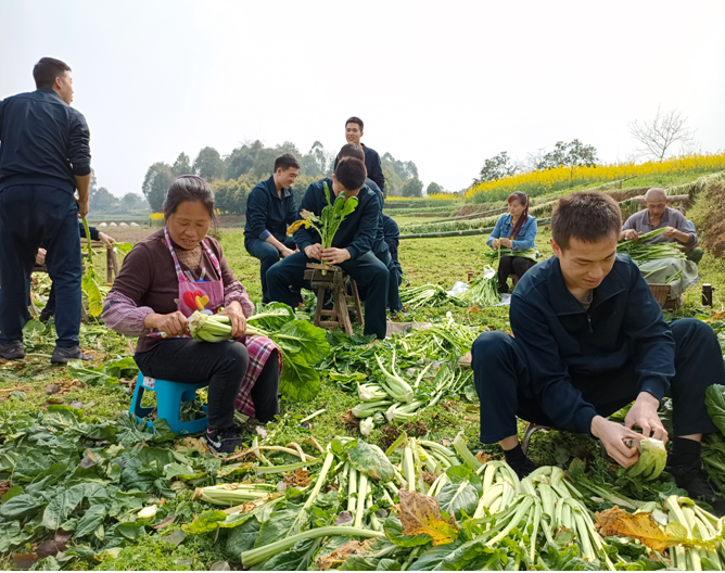 作为宜宾芽菜主产区的宗场镇,正值万亩芽菜原料青菜的集中收割和晾晒关键时期。为尽快尽早实现青菜的收割和晾晒,趁着行情卖个好价钱,驻地部队志愿者来到脱贫户陈林的青菜地,帮助其收割家中的5亩青菜,并进行现场加工,保障了脱贫户今年的经济收入。(供稿:翠屏区宗场镇)
