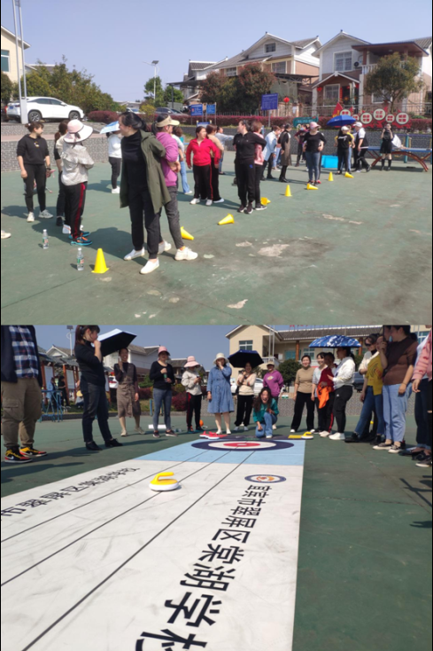 在活动中,参赛人员被划分为四个游戏小组,实行积分排名制,各组成员团结协作、奋勇争先,活动设置了“双人背夹球接力”“模拟冰壶”等集趣味性、技巧性、娱乐性于一体的户外拓展小游戏,吸引大家踊跃参与,乐在其中。活动现场气氛热烈,欢声笑语不断,每个人的脸上都洋溢着开心的笑容。