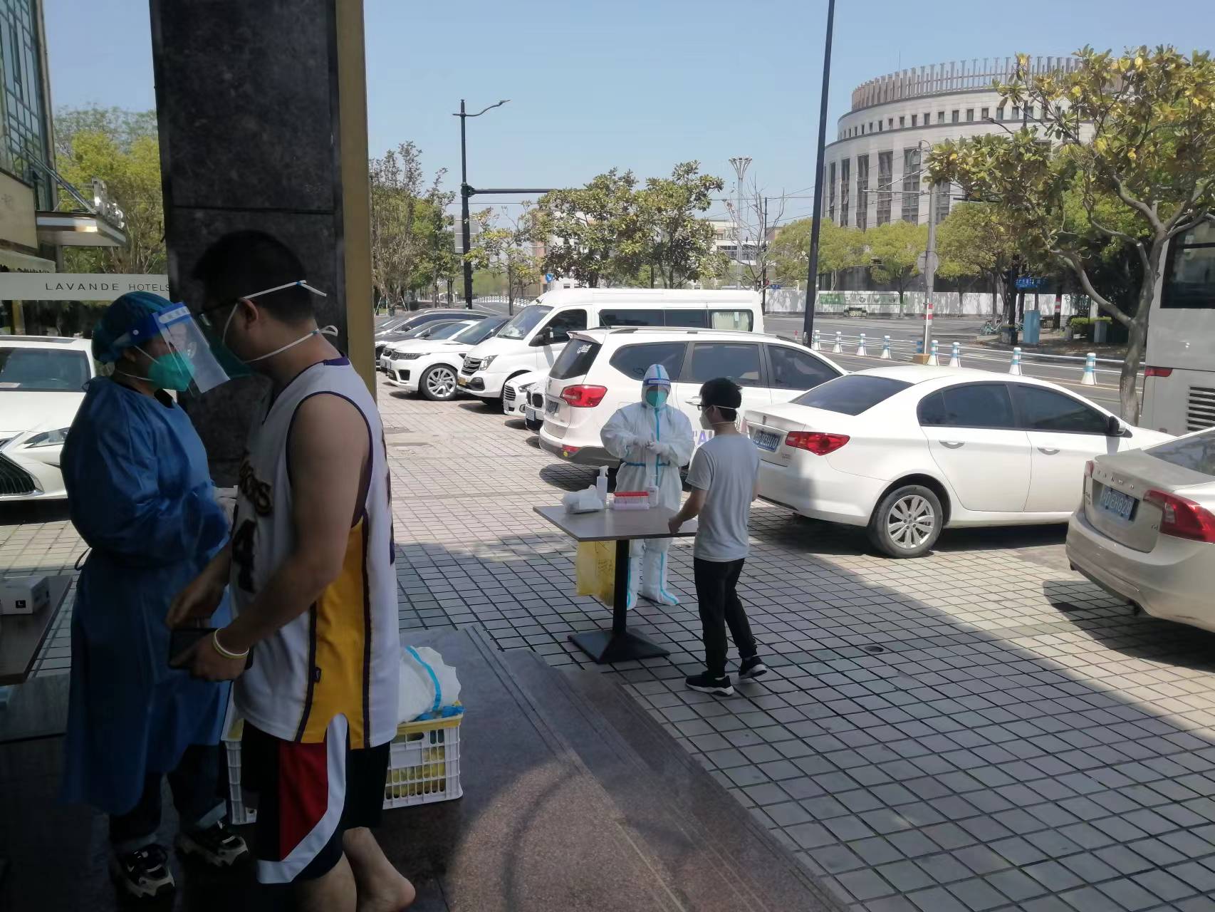四川新闻网消息(周瑜原 熊小冰 李清凌)4月12日上午,根据四川省应对新型冠状病毒肺炎疫情应急指挥部安排,省医院领队从宜宾、绵阳、巴中队各抽调两人,为住在同一宾馆的所有队友以及宾馆服务人员、大巴车司机共78人进行核酸采样。他们一人负责采样,一人负责组织、扫码,整个现场有条不紊,一个多小时后,完成了全体人员的采样工作。