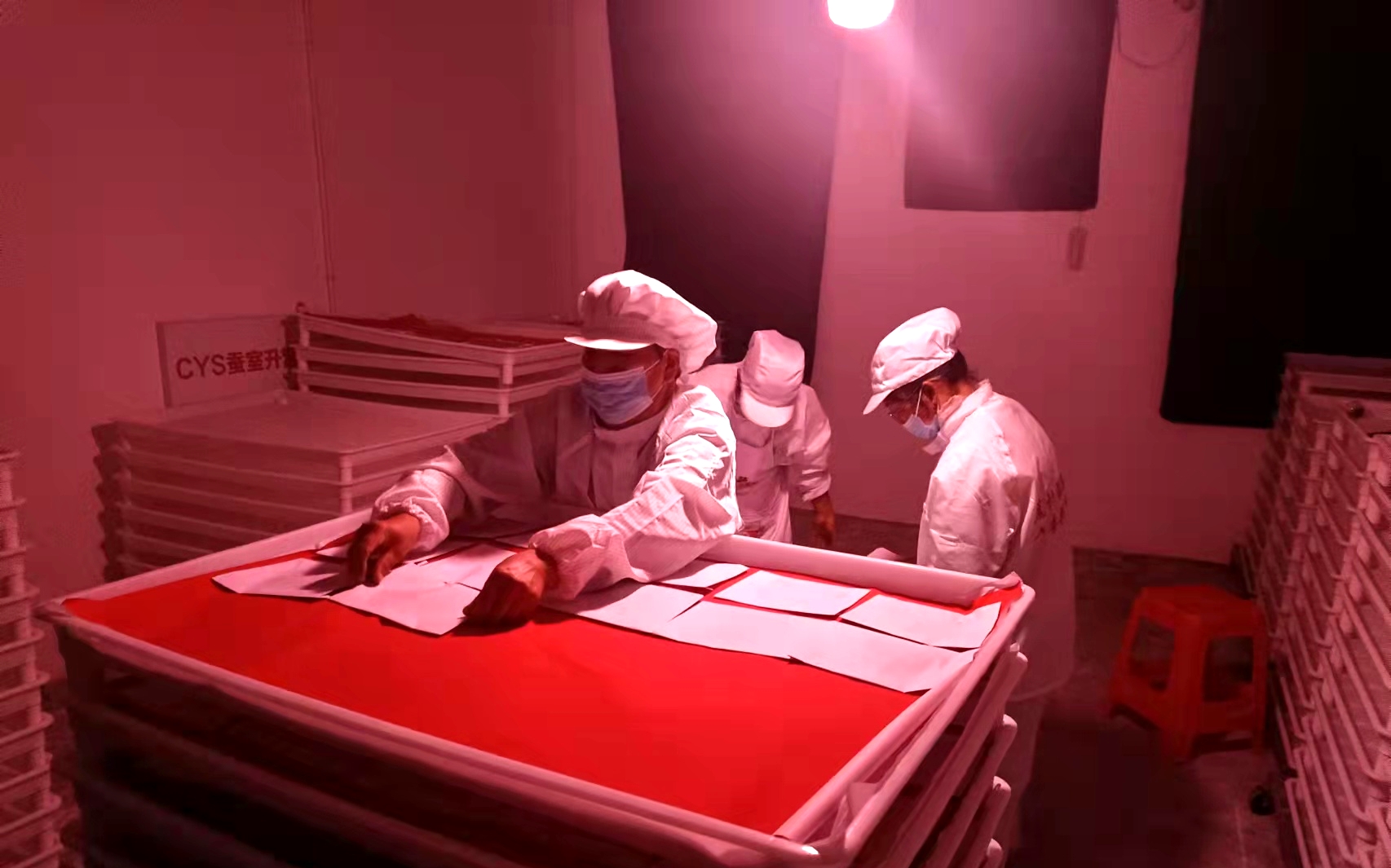 “正常培育情况下,每张蚕种可收获大约46公斤蚕茧,首批春蚕从收蚁到售茧只需28天左右。”高县蚕桑站站长刘玲介绍说,为了更好地保障春蚕质量,提高蚕农养蚕效益,绝大部分蚕种将直接进入到各镇、村的小蚕共育室进行集中照料孵化,度过幼蚕成长的关键期后,再交由蚕农进行喂养,不仅能提高孵化率和成活率,还大大缩短了饲养周期,进一步提升了养蚕效益。