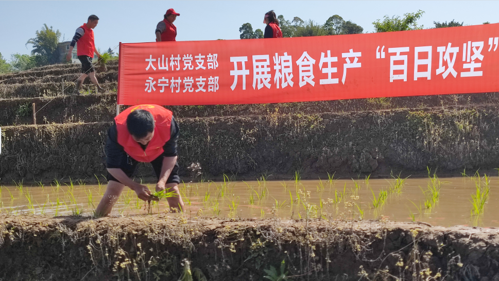 “彭书记,我正在为春耕的事犯愁呢!家里3亩稻田还没有栽秧子,家里又没有劳动力,我们老两口实在没办法耕种了,我心里都急死了,贻误了农时,影响今年粮食的收成可怎么办哟!”在了解到部分村民的春耕困难后,大山村党支部与永宁村党支部决定一起开展粮食生产“百日攻坚”主题党日活动和党员春训实践课堂,组织两个村的党员干部和志愿者,一起帮助村上劳动力缺乏的农户开展春耕生产。