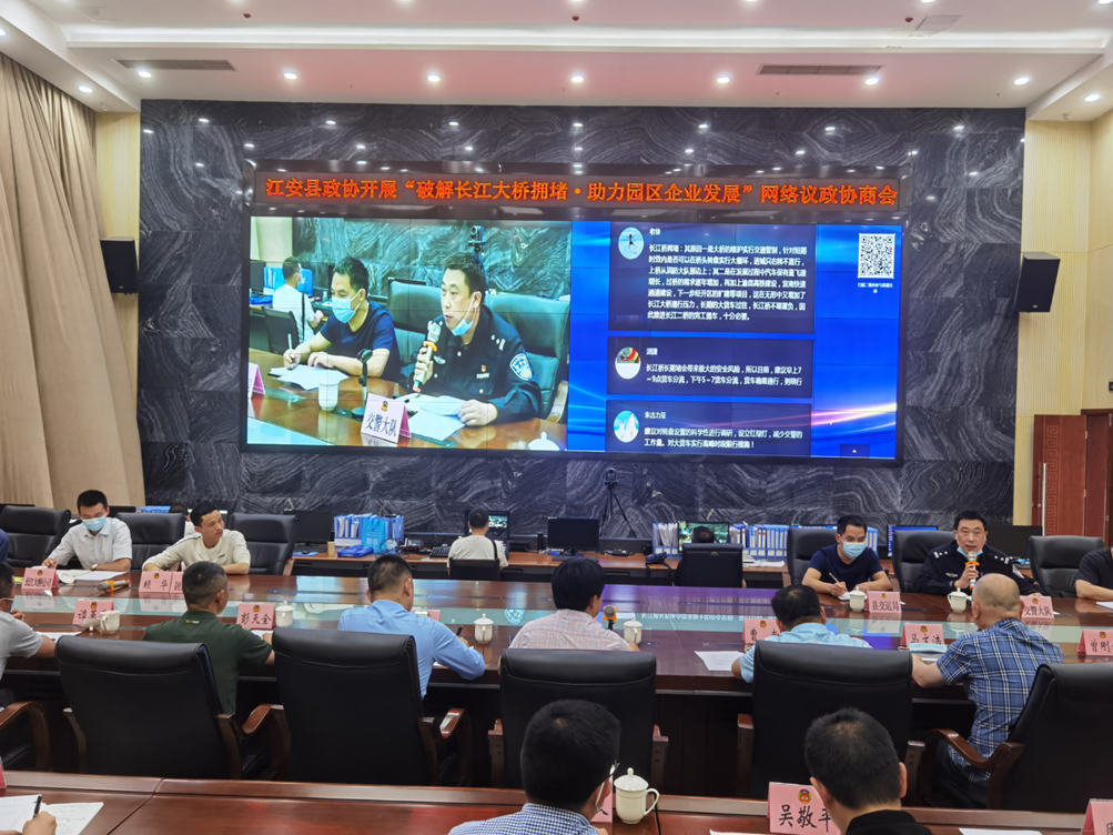 为回应群众关切,优化交通管理,破解长江大桥拥堵,助力园区企业发展,4月24日,江安县政协采用“云协商”的方式,围绕“破解长江大桥拥堵、助力园区企业发展”组织了一次别开生面的“线上+线下”同步协商会。