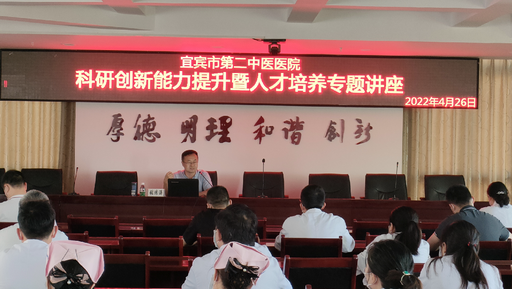 四川新闻网消息 为持续推进医学科研专业人才培养计划,有力提升宜宾市第二中医医院科研发展水平,在成都现代管理研究所的大力支持下,2022年4月26日,宜宾市第二中医医院专门组织开展第三期科研创新能力提升暨人才培养专题讲座。讲座特邀成都中医药大学张传涛教授亲临授课,成都现代医院管理研究所曾友元所长再次到场参与指导工作,院领导班子、各科室负责人及科研重点培训学员参加本次培训。