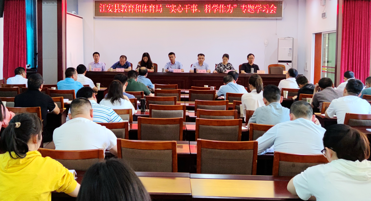 四川新闻网消息 5月7日,江安县教育和体育局召开“实心干事、科学作为”专题学习会,传达贯彻市委书记方存好在市级领导干部和县处级主要负责同志读书班上的讲话精神,安排部署“实心干事、科学作为”学习调研讨论活动,县委教育工委书记、县教体局党委书记、局长于顺江出席并讲话。