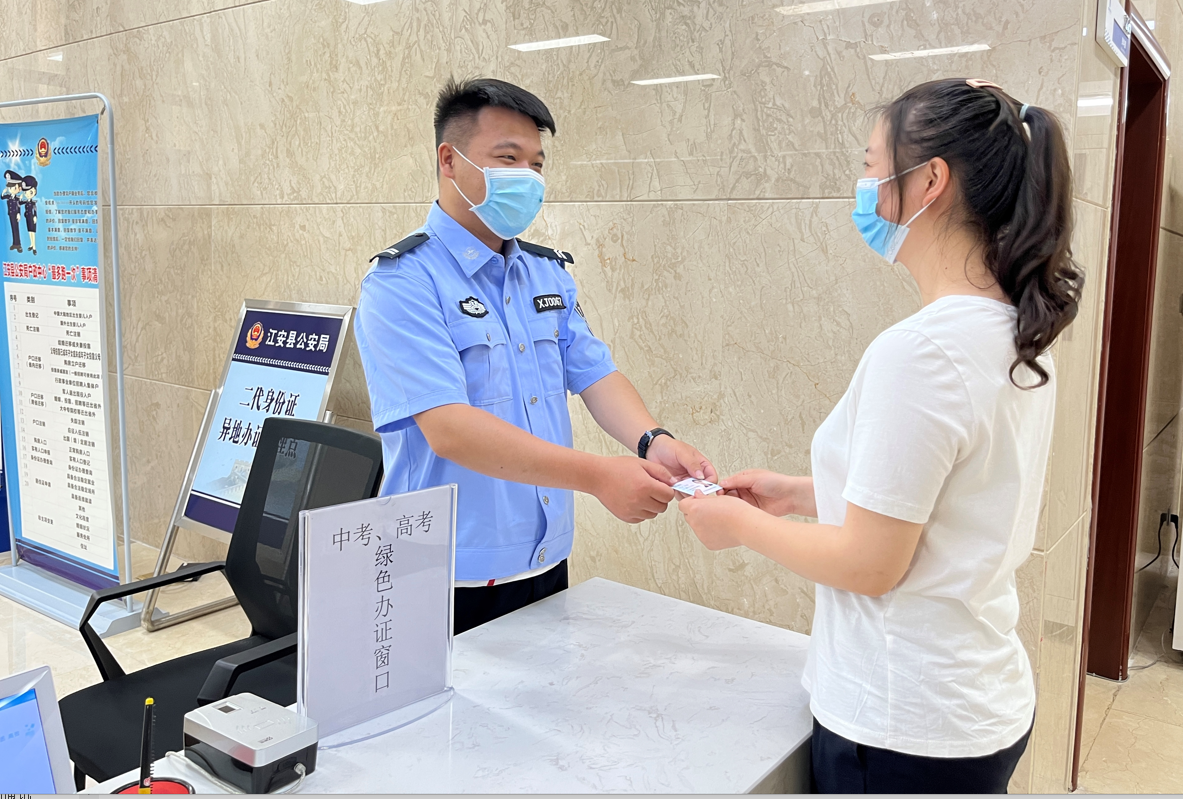 四川新闻网消息 在2022年中、高考来临之际,针对部分参考学生可能出现因居民身份证丢失、有效期满或证件损坏而急需补领、换领的情况,江安县公安局公安窗口从5月30日至6月18日,为中、高考学生开启居民身份证和临时身份证“绿色通道”,及时解决考生急需用证问题,全力为中高考生保驾护航。