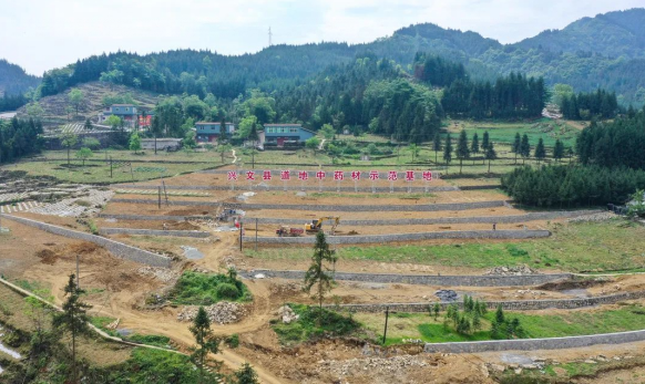 初夏时节,位于仙峰苗族乡的兴文县道地中药材示范基地一派繁忙景象,工人们正在加紧施工建设。