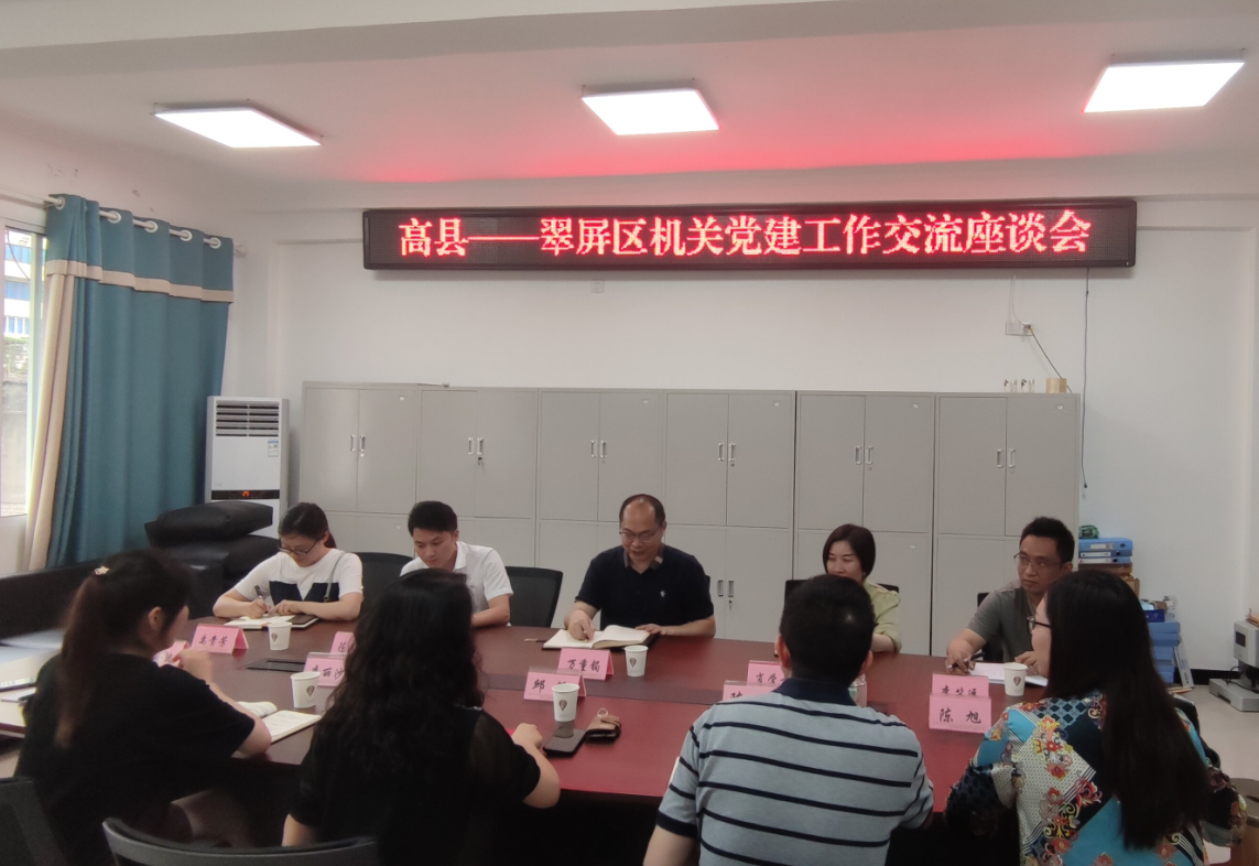 四川新闻网消息 近日,高县直机关工委常务副书记朱世彬一行到翠屏区调研交流机关党建工作,翠屏区直机关工委常务副书记邱添及全体班子成员陪同调研。
