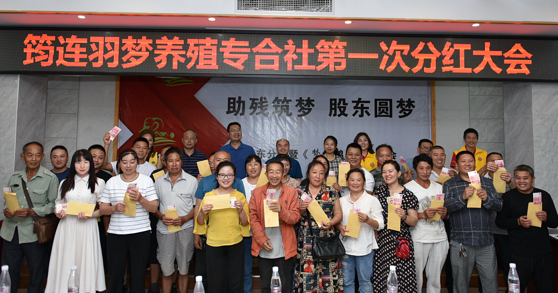 四川新闻网消息(周瑜原 杜云)6月14日,“助残筑梦 股东圆梦”筠连羽梦养殖专业合作社第一次分红大会暨“梦”鸭品牌发布会在宜宾筠连县残联会议室举行。会上,股东们拿到了第一次分红,并对合作社未来发展、养殖技术等进行了交流。