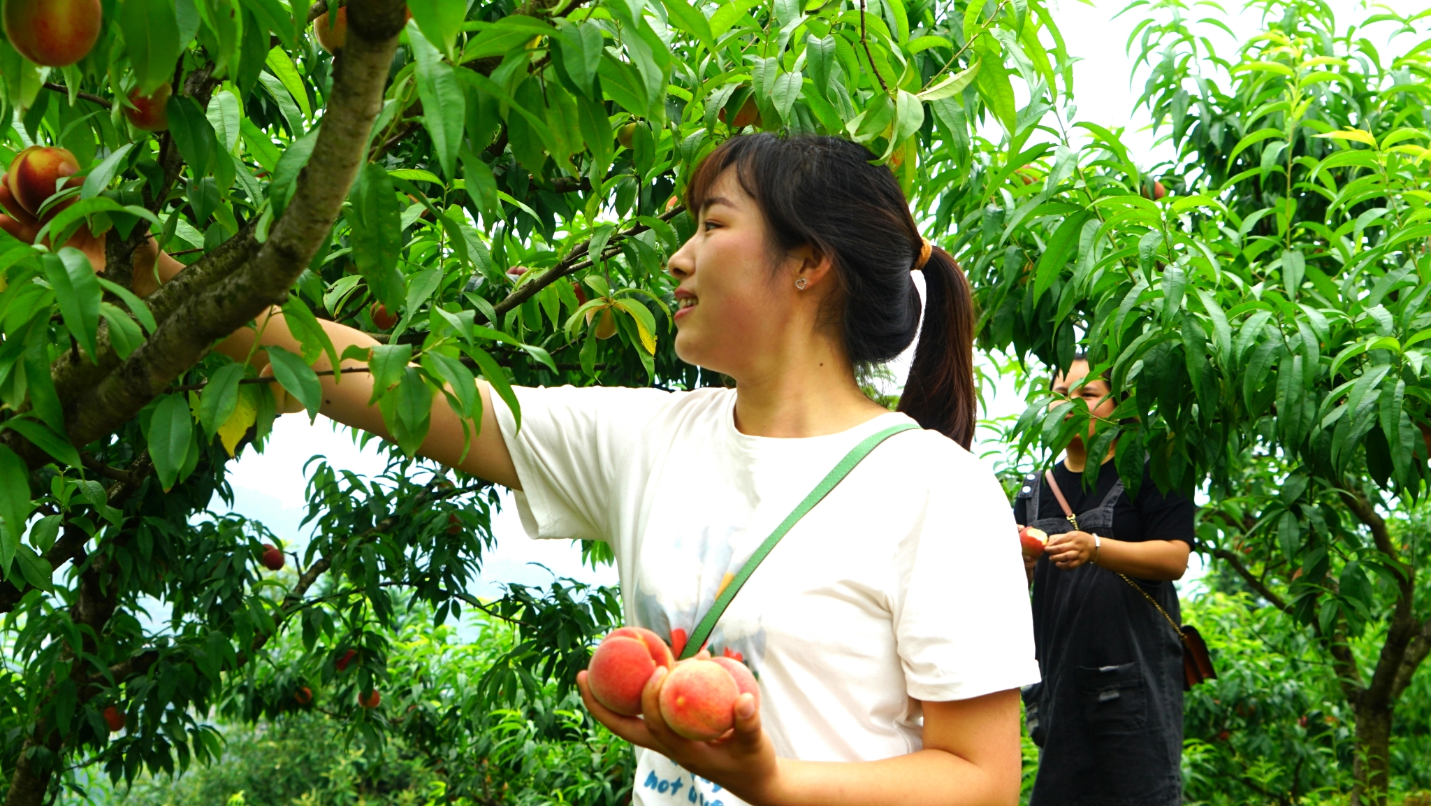 “这里的桃子水分足、味道甜,吃起来特别巴适。”连着几年,市民何钰都来五指山品桃、摘桃,今年更是邀上好友一起来共享桃园采摘的乐趣。
