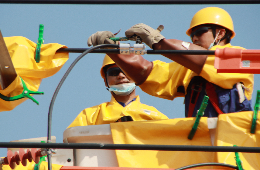 四川新闻网消息(周瑜原 杨义伟)6月24日,国网宜宾市南溪供电公司带电作业班员工头顶烈日、全副武装在瑞云街进行带电T接线路作业,为南溪区首个智慧立体停车场建设提供充足电力供应。