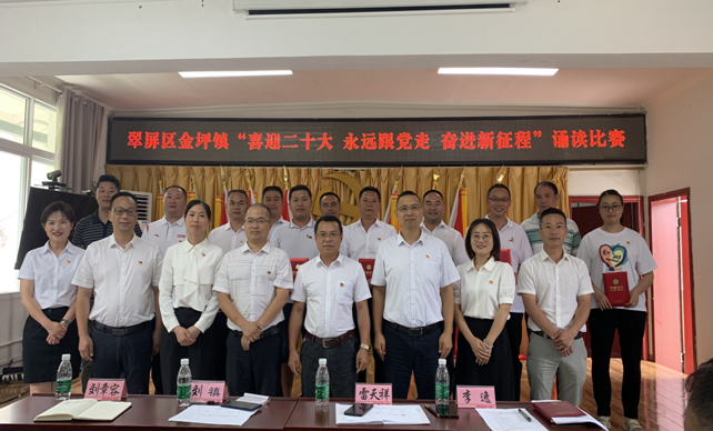 表彰大会结束后,举行了金坪镇“喜迎二十大 永远跟党走 奋进新征程”诵读比赛,来自村(社区)党支部(党总支)、镇机关党支部的11支参赛队伍走上舞台,深情讴歌百年历史、弘扬伟大建党精神,感悟奋斗伟业、砥砺奋进新征程。比赛最终评选一等奖1名,二等奖2名,三等奖3名,优秀奖数名。(供稿:翠屏区金坪镇 周琴)