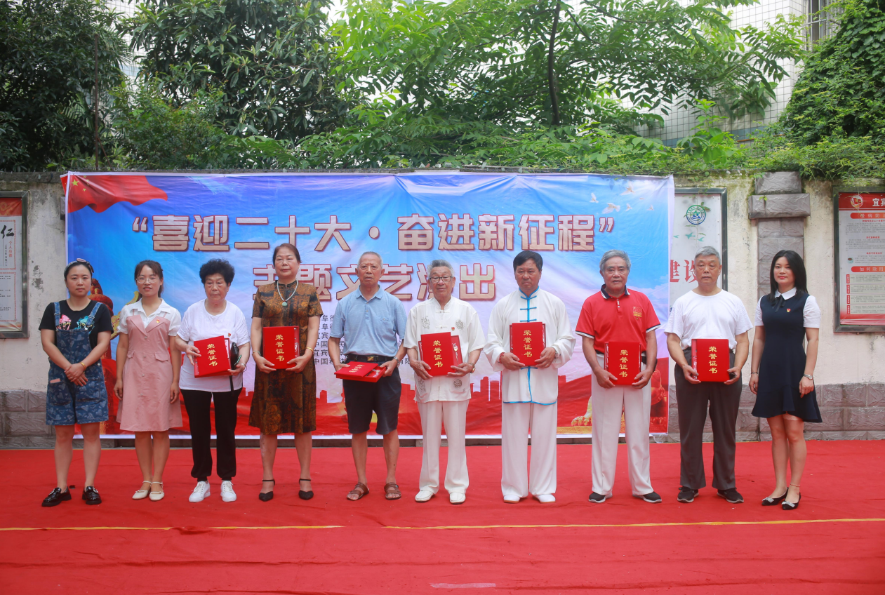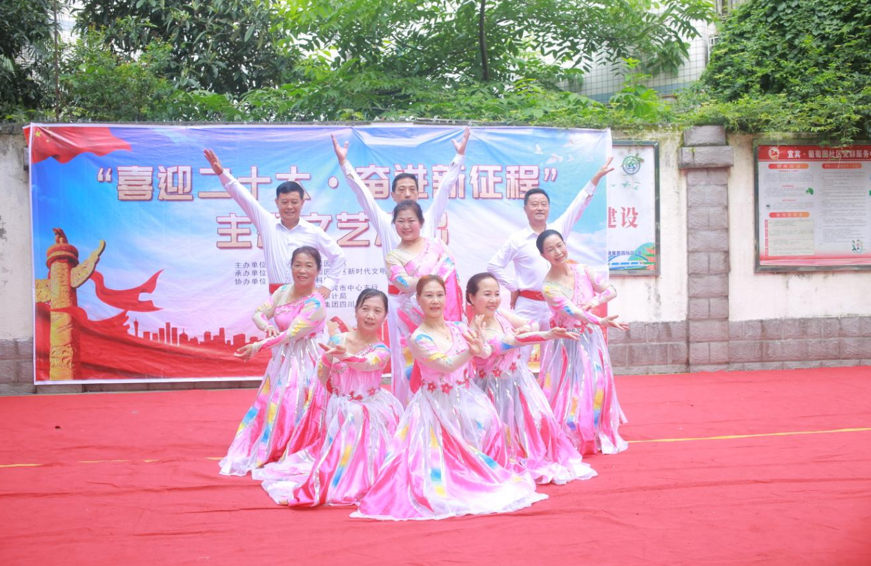 四川新闻网消息 6月24日上午,翠屏区安阜街道葡萄园社区在谐苑小区门口广场举办庆祝“七一”暨“喜迎二十大·奋进新征程”文艺汇演活动,宜宾市农科院、人行宜宾市中支、翠屏区审计局等包保单位,宜宾移动和社区老体协参加活动,更有接连不断的精彩表演吸引了上百名群众驻足观看。