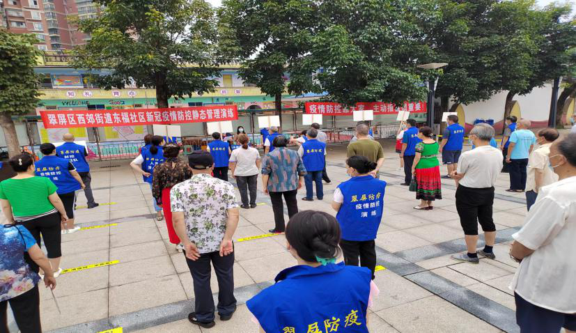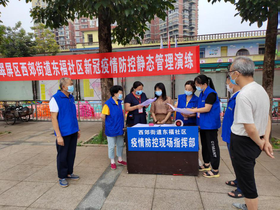 四川新闻网消息 为进一步做好辖区疫情防控工作,提高辖区疫情应急处置能力以及居民群众防控意识。近日,翠屏区西郊街道东福社区积极落实上级政策要求,组织街道联络组、社区工作人员、居民小组长、疫情网格员、小区物业以及辖区党员志愿者在福园一区文化广场开展本土出现疫情事件静态管理演练。