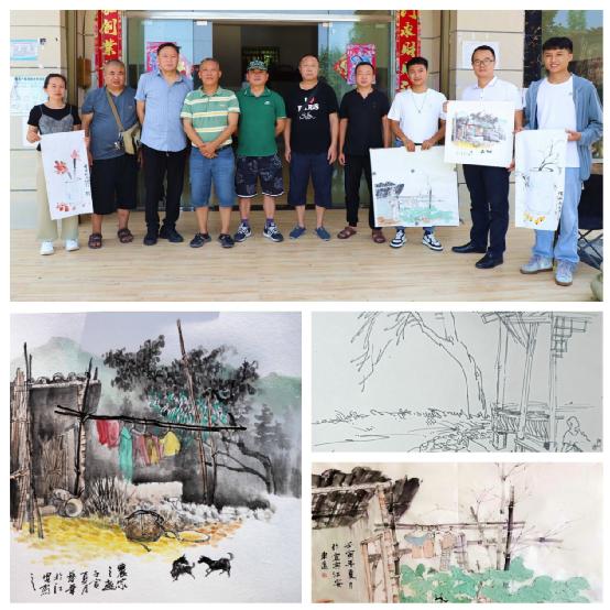 当日当地气温高达40°。书画家不畏高温和路远,从四面八方汇聚江安,先后走进该县大井镇铜锣村(全国文明村镇)、丰收村的连天山,夕佳山古民居;相继走访两镇先进文明代表人物、整洁净美的农舍小院、景色怡人的“打卡胜地”,并现场写生创作出了一幅幅精美作品,深得“群众模特”和村民们的喜爱与好评!