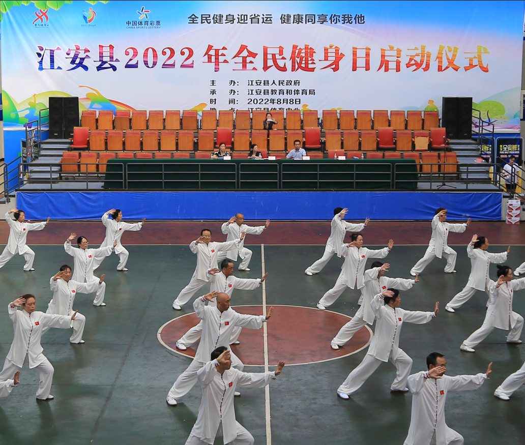 活动现场,举行了启动仪式,发出了全民健身倡议,开展了戏剧操、太极拳、爵土舞、江安竹簧、街舞等健身活动展演,充分展现了江安人民良好的精神风貌。