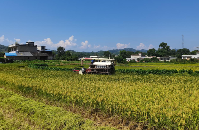 四川新闻网消息 炎炎酷暑,正值水稻成熟的季节,在兴文县五星镇金钟村的高标准农田里,收谷机正在火热地工作着,一包包稻谷被运送到农民家里。