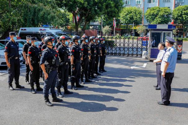 | 何益伟(右二)到江安县公安局慰问整装待发的巡警人员。江安县融媒体中心朱安康 摄 |