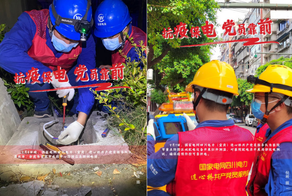 “抗疫保电 义不容辞”共产党员充分发挥先锋模范作用,有担当、能坚守、勇作为,这一张张照片背后,是一群青春热血、主动作为的供电青年,是一群“疫”无反顾、勇于担当的共产党员。(供图:国网宜宾供电公司)