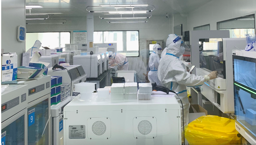 | 工作人员争分夺秒开展核酸检测各项工作 |