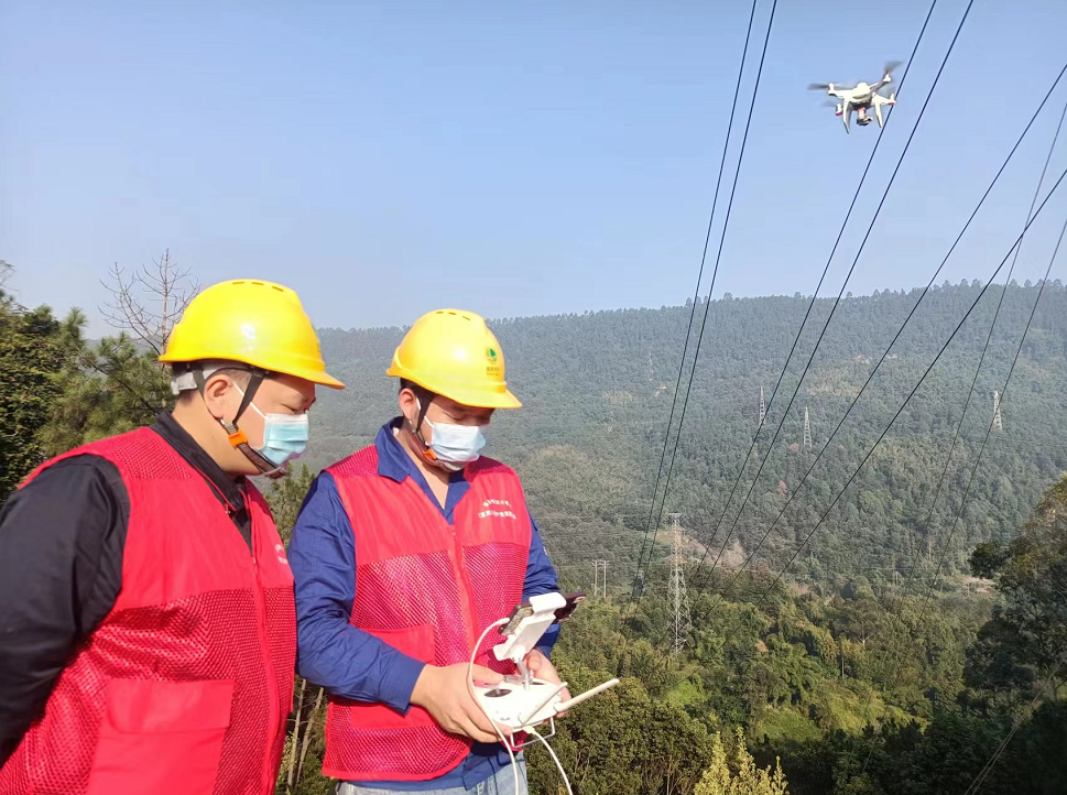 | 保电人员对10千伏重要线路进行无人机巡检 |