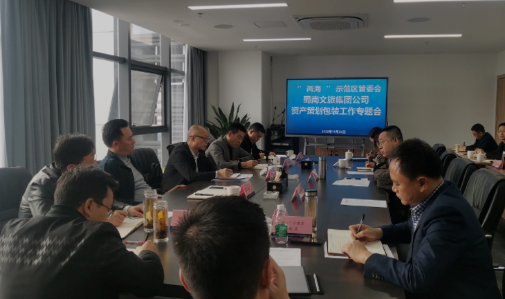 四川新闻网消息(邓婷婷 记者 周瑜原)为进一步梳理整合资产,发挥资源优势,提升融资能力,11月26日,蜀南文旅集团与“两海”示范区管委会联合召开“两海”示范区管委会与蜀南文旅集团公司资产策划包装工作专题会。和顺建投公司国资公司总经理王英俊出席会议并作分享,“两海”示范区党工委副书记、管委会主任赵金江、蜀南文旅集团公司党委书记、董事长罗景元出席会议并讲话,双方各相关负责人员参加。
