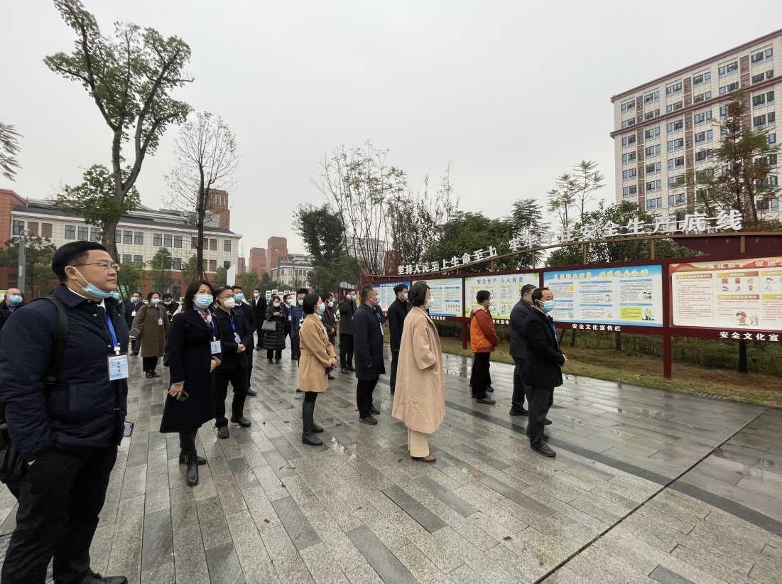 与会人员一行在宜宾市总工会党组书记、常务副主席万云江,市总工会党组成员、副主席景洪伦,翠屏区人大常委会党组副书记、副主任黄学雷及园区相关负责人的陪同下,先后参观了园区安全文化广场和安全创新工作室。